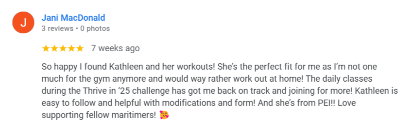 115 Richmond Street, Charlottetown, PE, C1A 1H7 | Email: support@kathleengracefitness.com